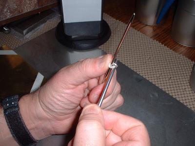 The end loops of the bowtie are now parallel. A second mandrel, 3.5 mm in diameter, is passed through the parallel loops.